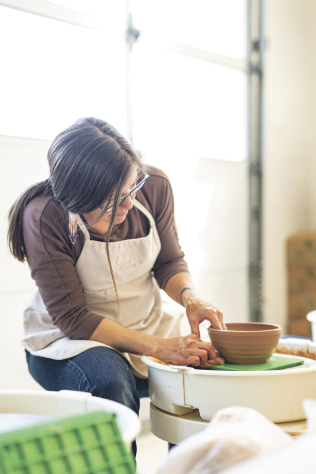 “And everyone is at the same starting point—if you haven’t thrown on a wheel before, it doesn’t matter how old you are.” The clay studio can fire pottery for visitors and ship clients their finished product.